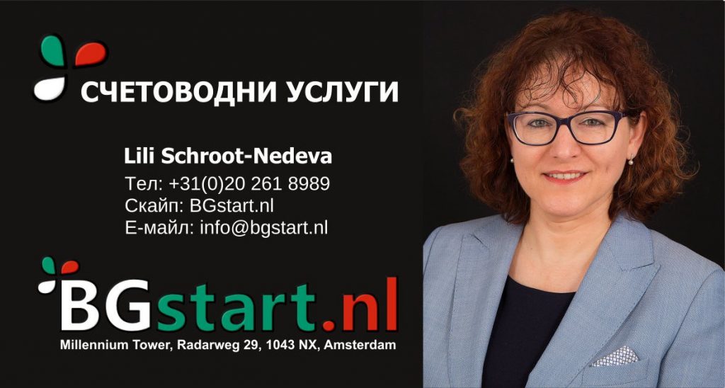Ако сте добри с техниката, можете да си изберете онлайн счетоводна програма и да си обработвате сами документите. Ангажимента за приключване на календарната година и компилирането на годишния финансов отчет можете да възложите на счетоводна кантора. Това се нарича – samenstellingsopdracht или компилиране на финансова информация. Крайния резултат е отчет със заверка от страна на дипломирания експерт-счетоводител. Това доказва качеството на финансовите резултати на фирмата ви и повишава доверието на контрагентите ви във вас.